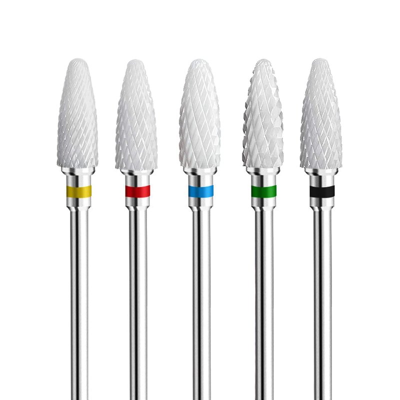 Fantexy Ceramic Nail Drill Bits Set,3/32'' Shank Professional Corn Shape Ceramic Bits,Acrylic Nail File Bits for Manicure Pedicure Cuticle Gel Nail Polishing,Use for Both Left and Right Handed(5 Pcs)