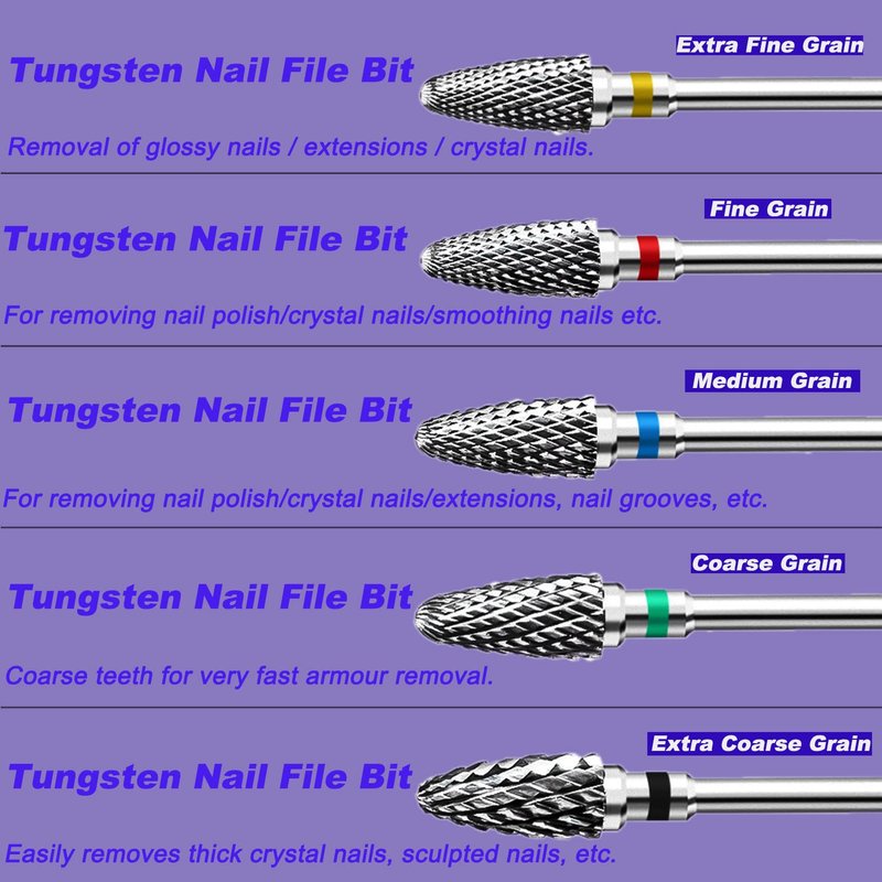 - Premium tungsten nail drill: made from tungsten steel, the professional filing drill is strong enough to remove hard gel nails with little friction and heat, and produces less dust. Whether you are a nail technician or prefer to do your nails at home, this high quality nail art drill will be one of the most important kits that make up your professional nail art supplies.