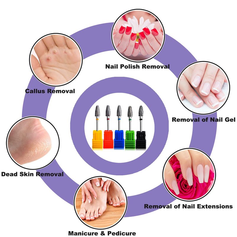 - 5pcs Nail drill tools with box:Available in a variety of shapes and sizes to suit different kinds of needs, you can easily and quickly removing nail polish/crystal nails/smoothing nails etc.