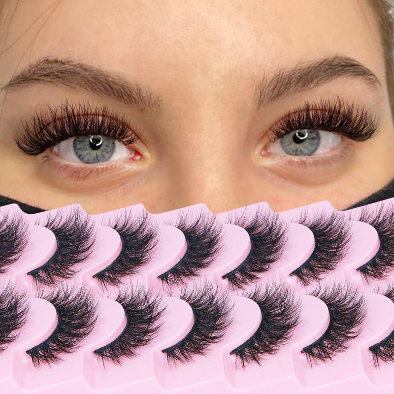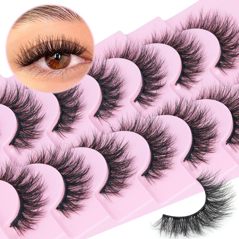 FANXITON Wispy False Eyelashes Natural Look Short Mink Lashes Fluffy Curly 3D Faux Mink Eyelashes 7 Pairs Pack