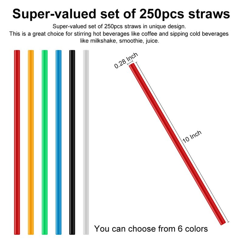 - Super-Valued Set: Includes 250 pieces of 10-inch super long straws with a unique design; great for stirring hot beverages like coffee and sipping cold drinks like milkshakes, smoothies, and juice