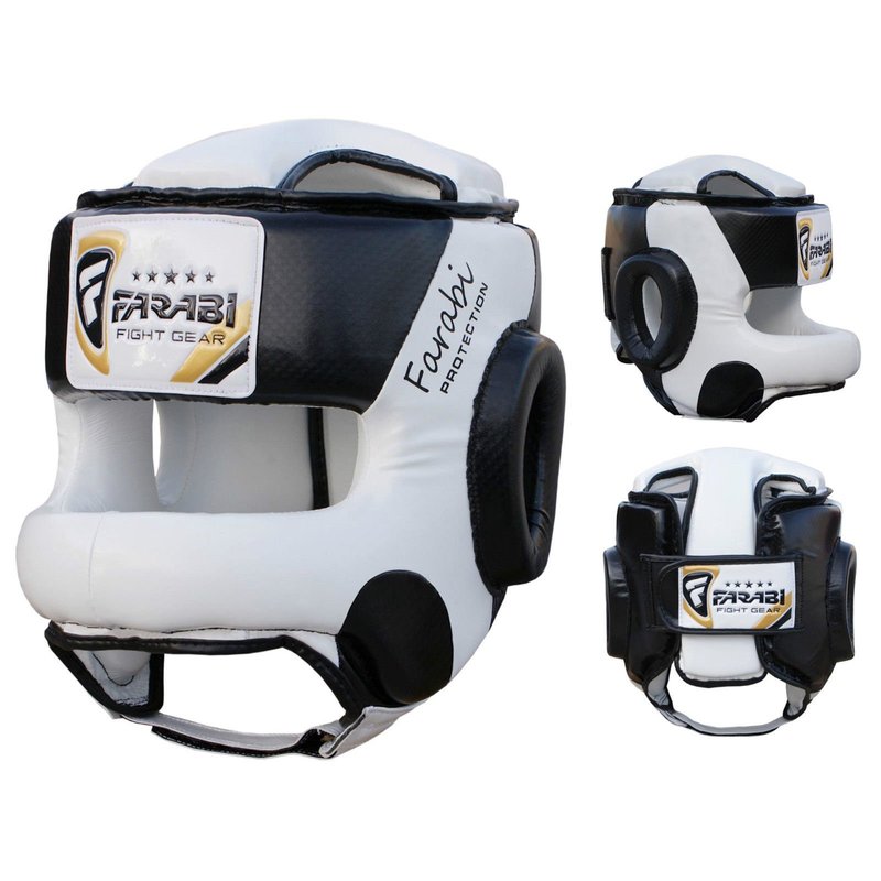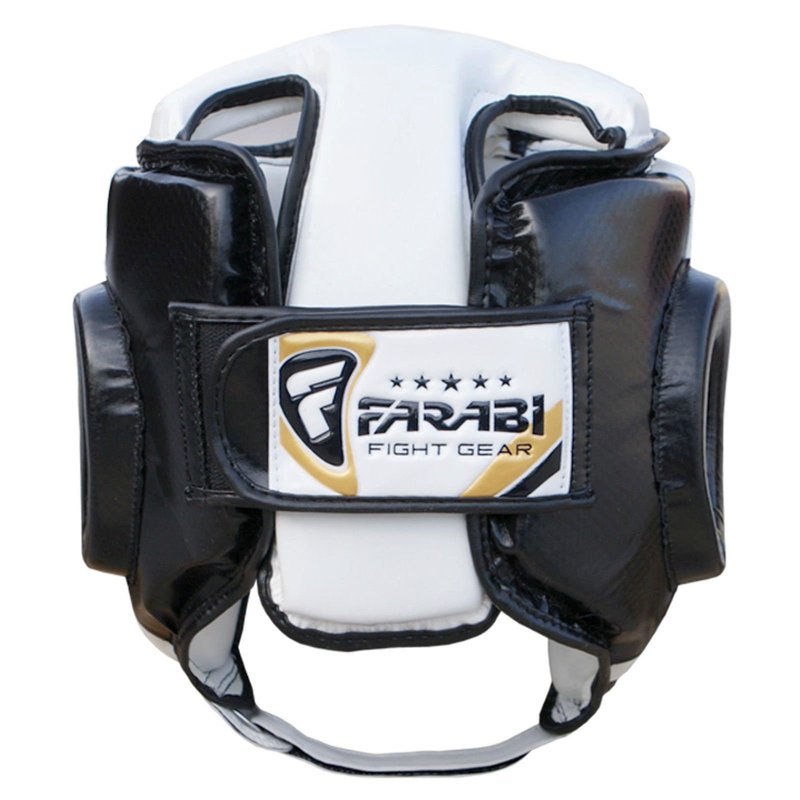 Farabi Sports Head Guard U Shape Boxing Headgear Kickboxing Martial Arts Training Boxing Helmet (L/XL, Black/White)