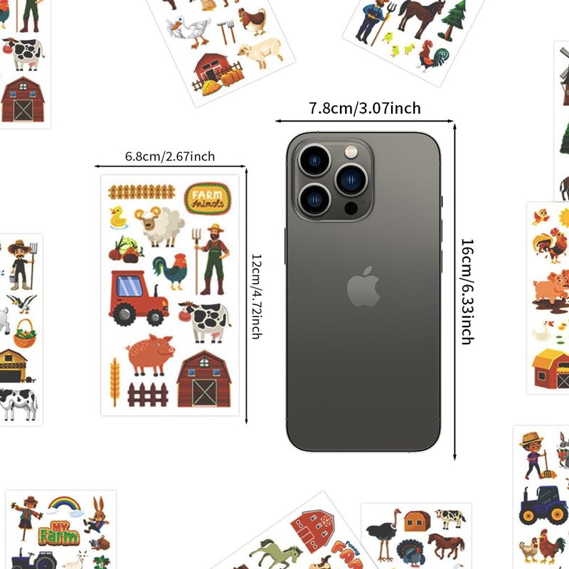 - Package includes:Comes with 10 sheet various styles of farm animal stickers, you can share them with your family and apply them to makeup together!Each sheet tattoo size is 4.7x2.67inch/12x6.8cm.