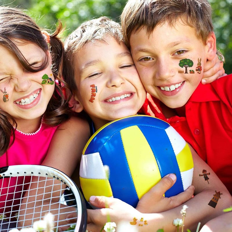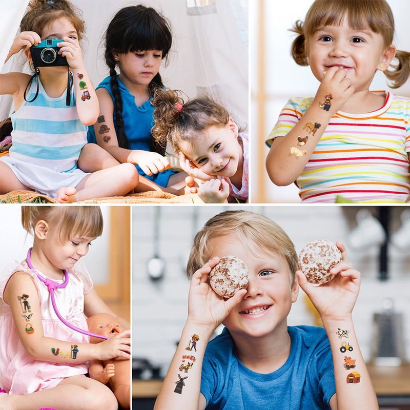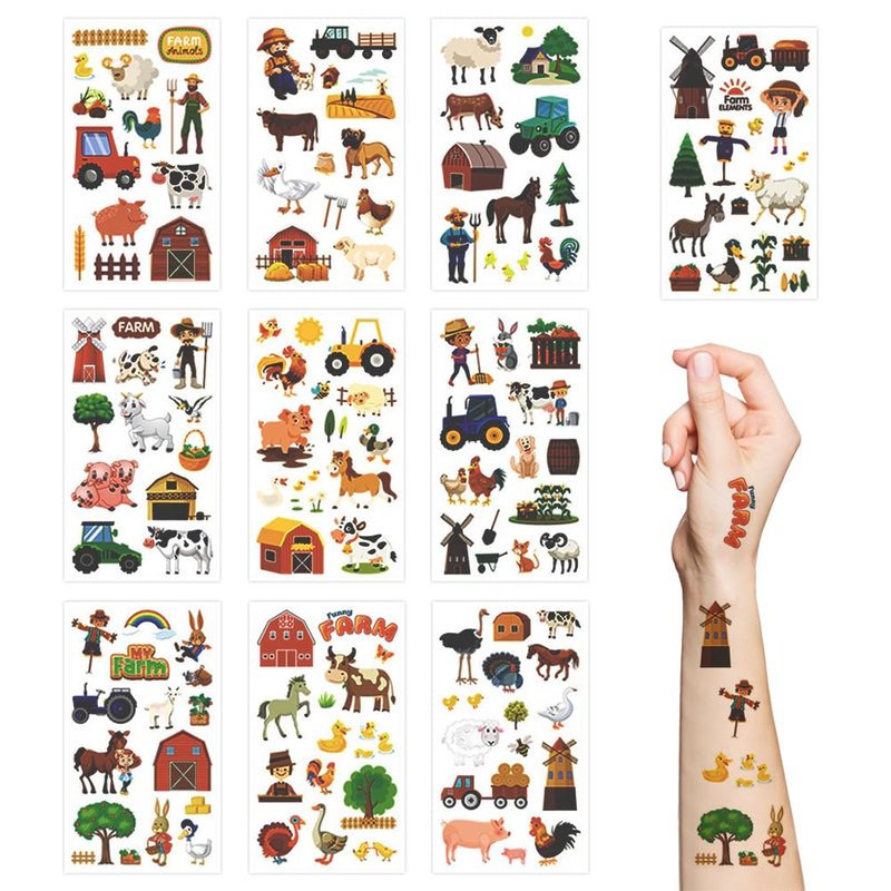 - Farm Element Design:Come with various funny elements,such as farm animals, tractors, farming implements, houses, etc.Add an individual extra touch of fun to a children’s party or event with our tattoos.