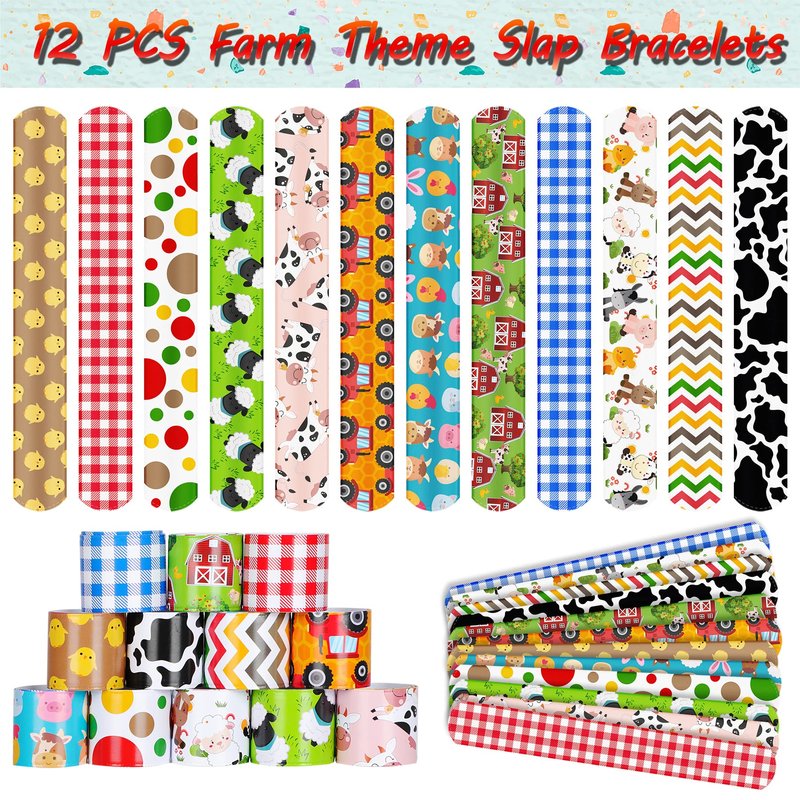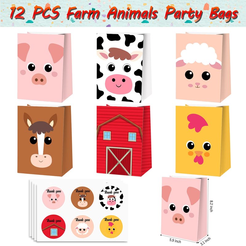 - PACKAGE INCLUDE - Farm animals party favors set includes 12 PCS Farm Animal Masks, 12 PCS Keychains, 12 PCS Stickers, 12 PCS Straw, 12 PCS Slap Bracelets, 12 PCS Pink Rubber Pigs, 12 PCS Paper Gift Bags.