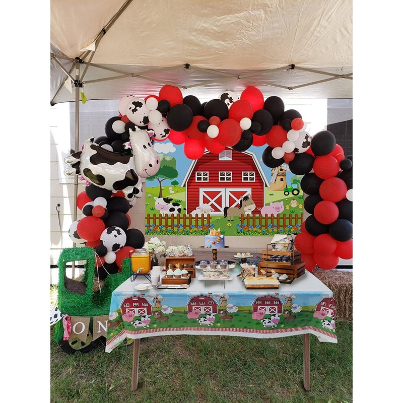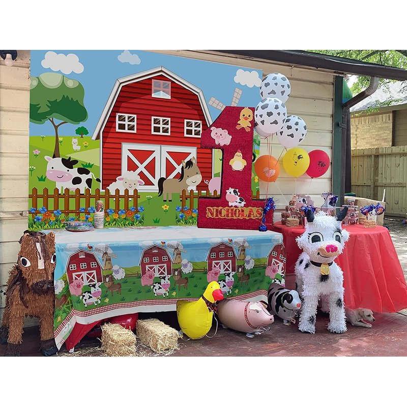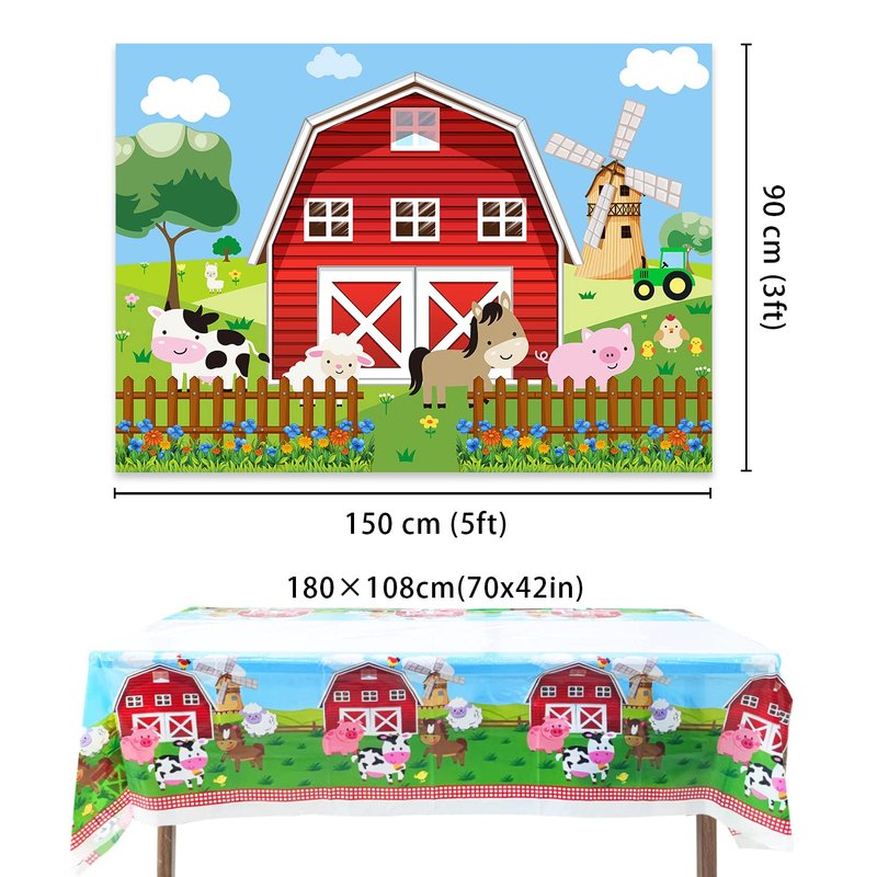 - Usage: The farm animals party backdrop and tablecloth suitable for farm themed birthday party, jungle animals cartoon theme party, kids 1st 2nd 3rd happy birthday cows theme party decoration supplies