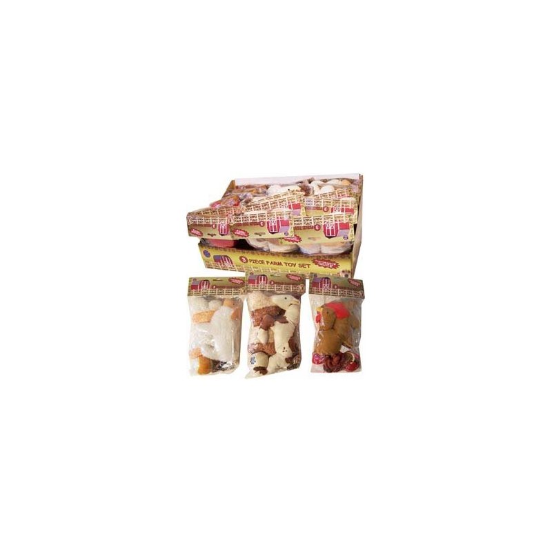 Farm Dog Soft Toy Set Each set includes a Plush Animal, a Plush Bone and a Tennis ball Choose from Turkey, Rooster or Sheep Super soft, snuggly plush material Includes a squeaker for added entertainment Made of non-toxic materials & colors Toys provide chewing entertainment & encourage exercise IF YOU WANT A SPECIFIC STYLE OF FARM ANIMAL PLEASE EMAIL US OTHERWISE WE WILL SEND A RANDOM SET