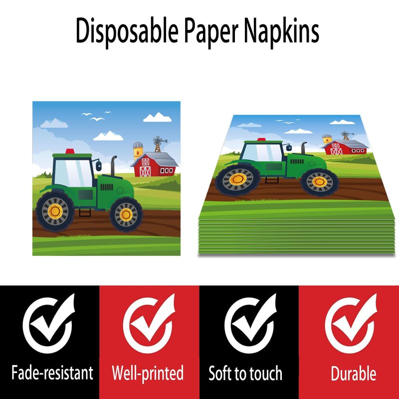 Farm Tractor Paper Napkins for Tractor Birthday Party Supplies Tractor Disposable Paper Farm Tractor Themed Luncheon Paper Napkins Tractor Party Tableware Barnyard or Farm Theme Party Supplies(40 Pcs)