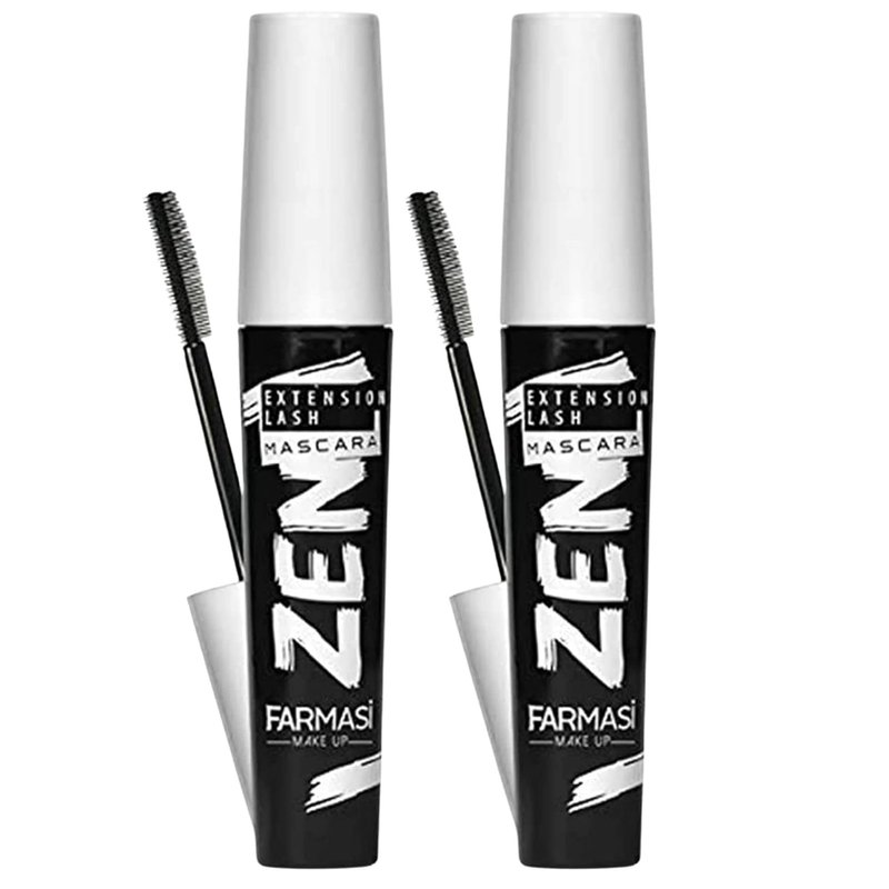 Farmasi Zen Extension Lash Mascara, Deep Black, Eyelash Volumizer with Smudge Free, No Clump, All Day Finish, Flake Resistant Makeup, Fuller Longer and Thicker Lashes, 8 mL (Double)
