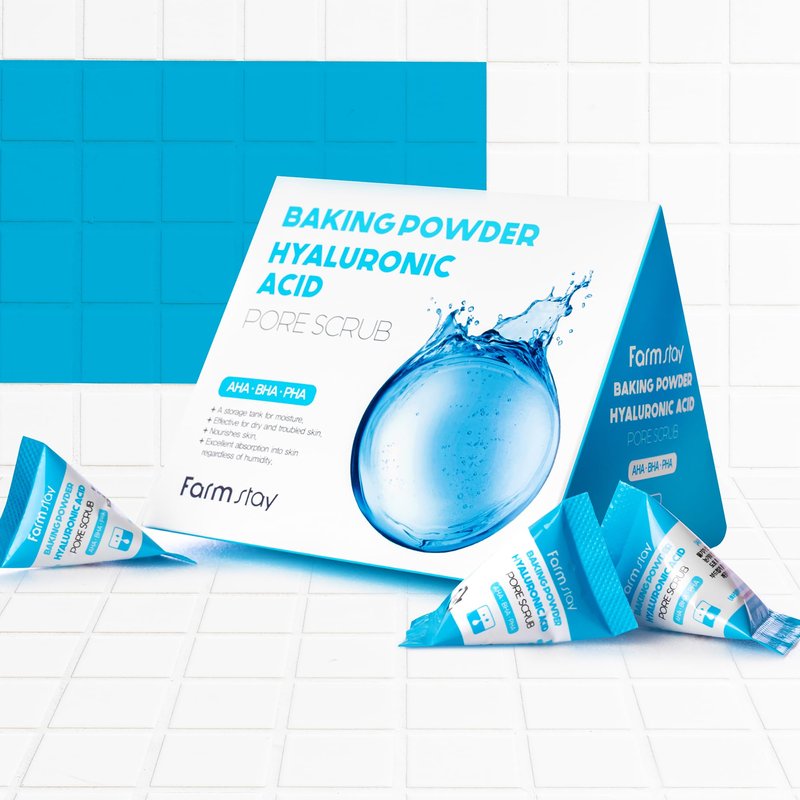 FARMSTAY Baking Powder Hyaluronic Acid Pore Scrub - Face Scrub for Pore Cleansing - With Hyaluronic Acid - AHA, BHA, and PHA Formula - 7 pc