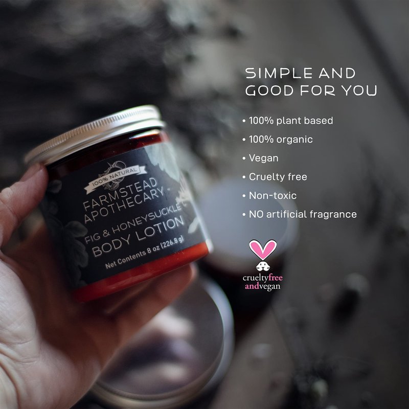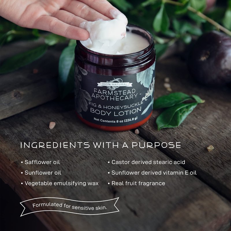 Farmstead Apothecary 100% Plant Based Body Lotion with Organic Safflower Oil, Organic Sunflower Oil & Organic Vitamin E Oil, 8 Oz (Fig & Honeysuckle)