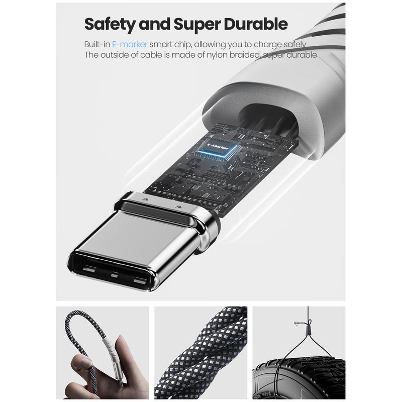 With 20000+ bend lifespan and high-quality materials, this cable will be durable and sturdy, and can serve for a long time. - 100W PD Fast Charging