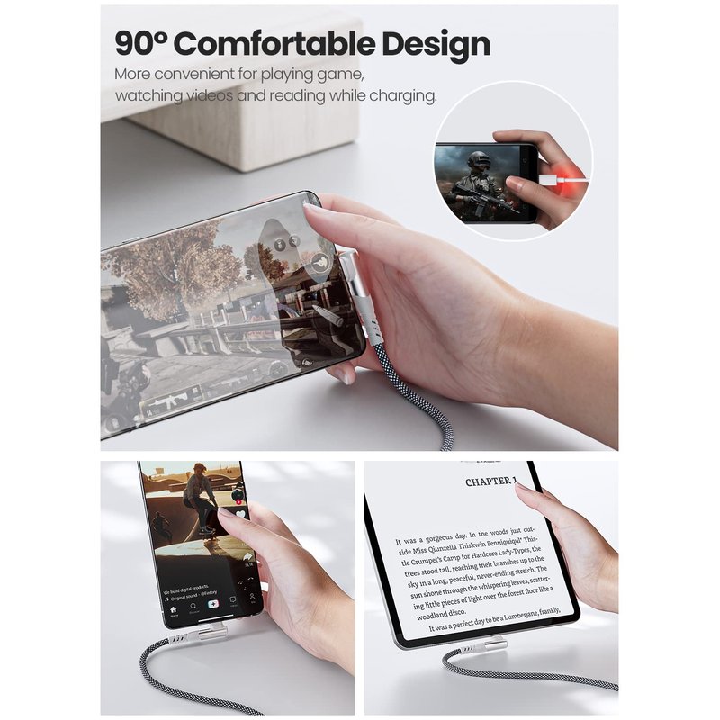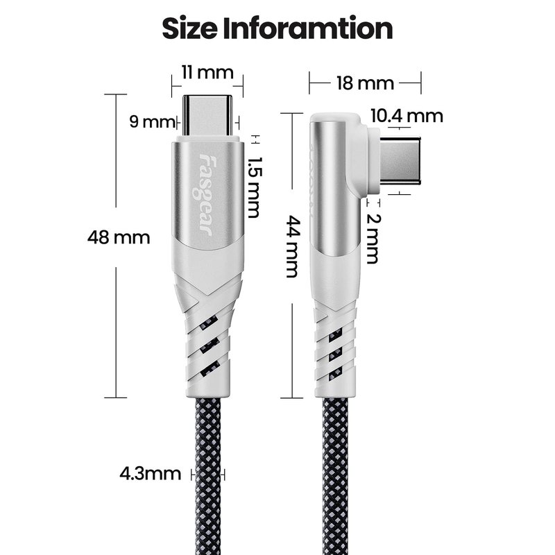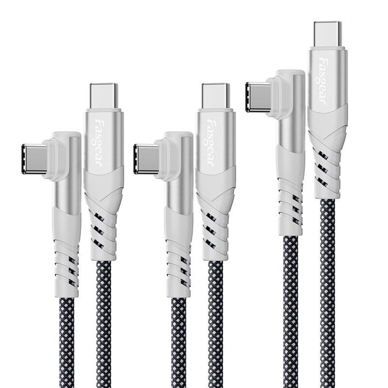 - 【Durable L Shape Designed USB C Cable】- This Fasgear Right Angle USB C fast charging cable has a new version 90 degrees "L" designed. 90-Degree USB C plug is more convenient and comfortable when charging for laptops. With long-lasting design idea, this USB C to USB C PD cable is made of a premium aluminum alloy shell, strong & tight nylon-braided shell. It can withstand 20, 000+ bendings and is flexible enough to wrap up and put in the bag.