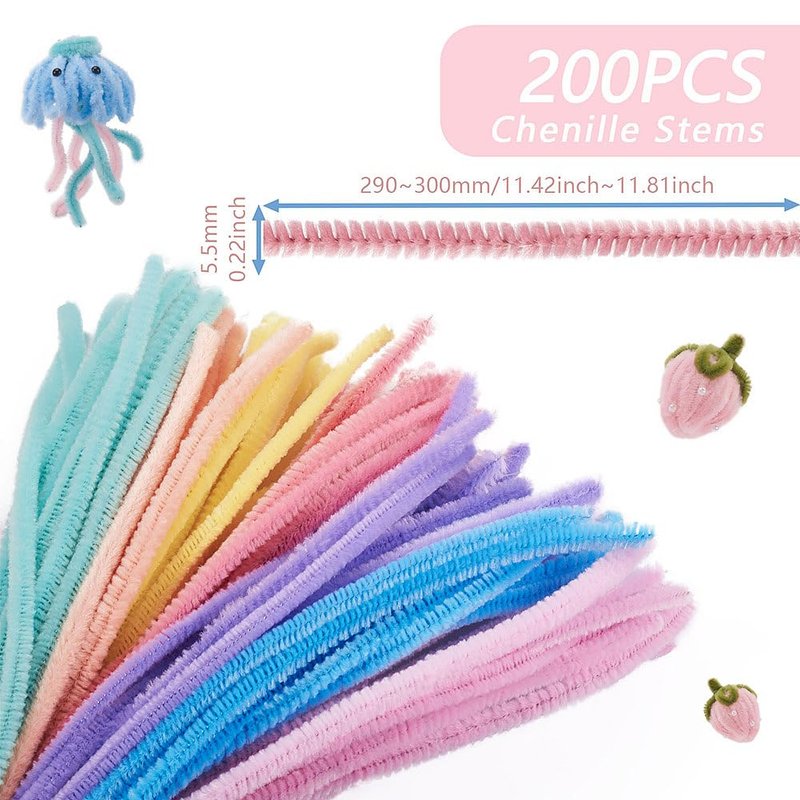 - 【Package Include】200pcs colorful pipe cleaners in about 29~30mm/12 inch long, 5.5mm wide, 4.5mm thick.