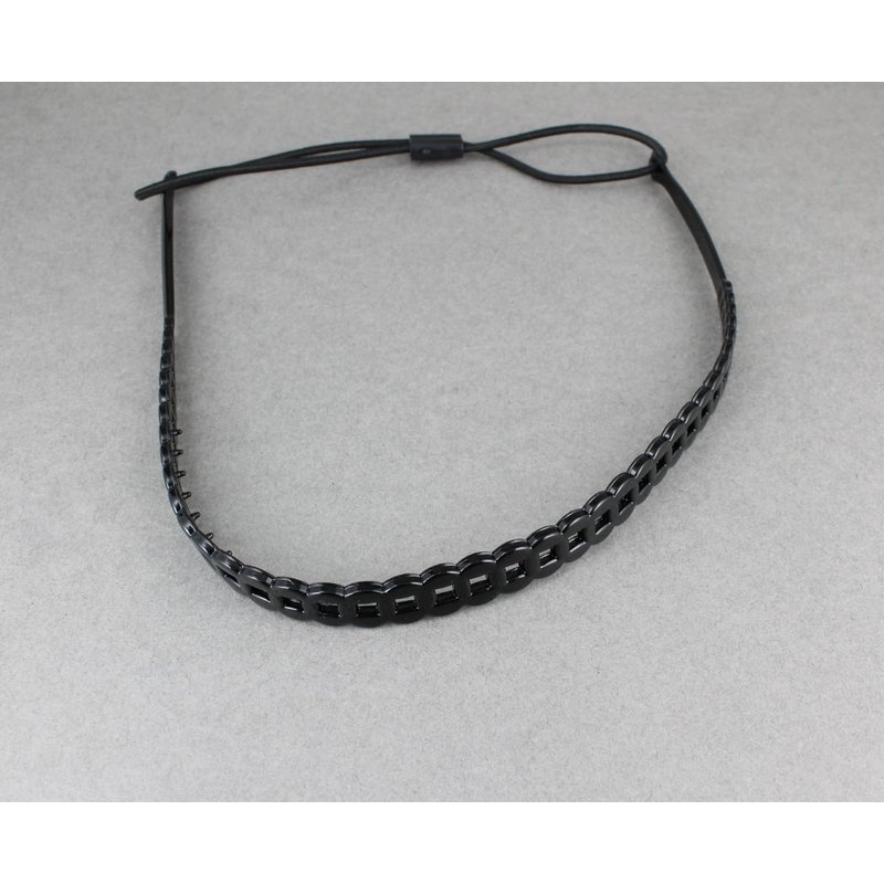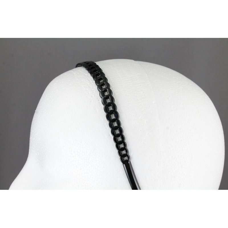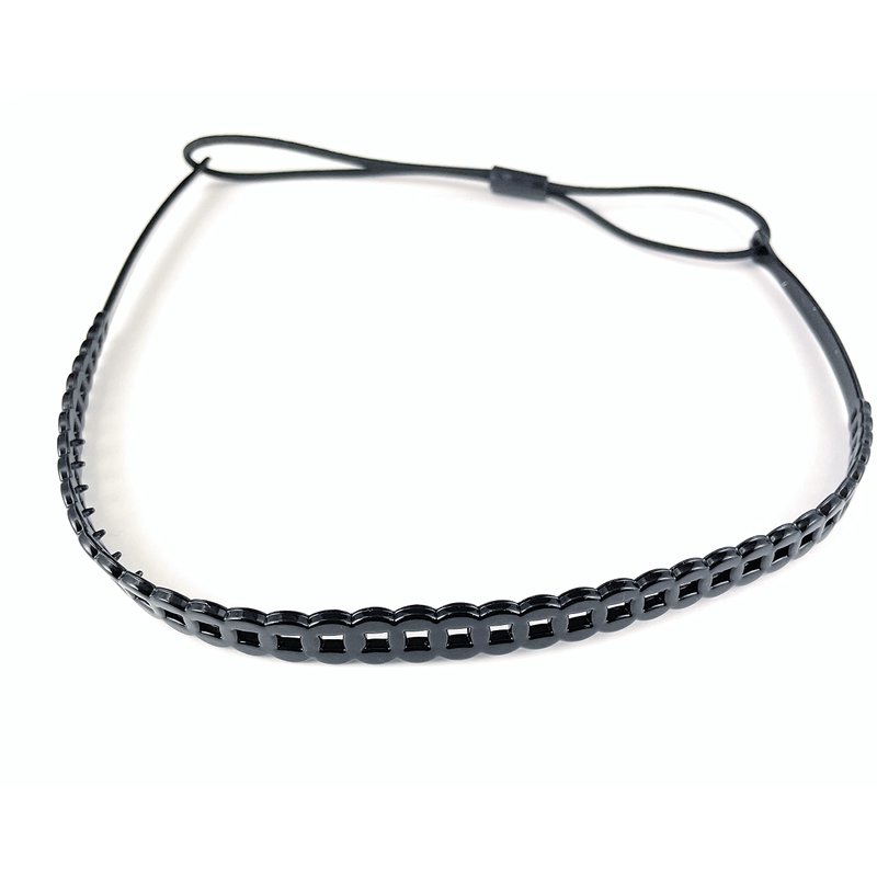 Fashion Accessories Now Black chain link pattern jelly skinny narrow headband soft stretch hair grip teeth 3/8 inch wide circle link