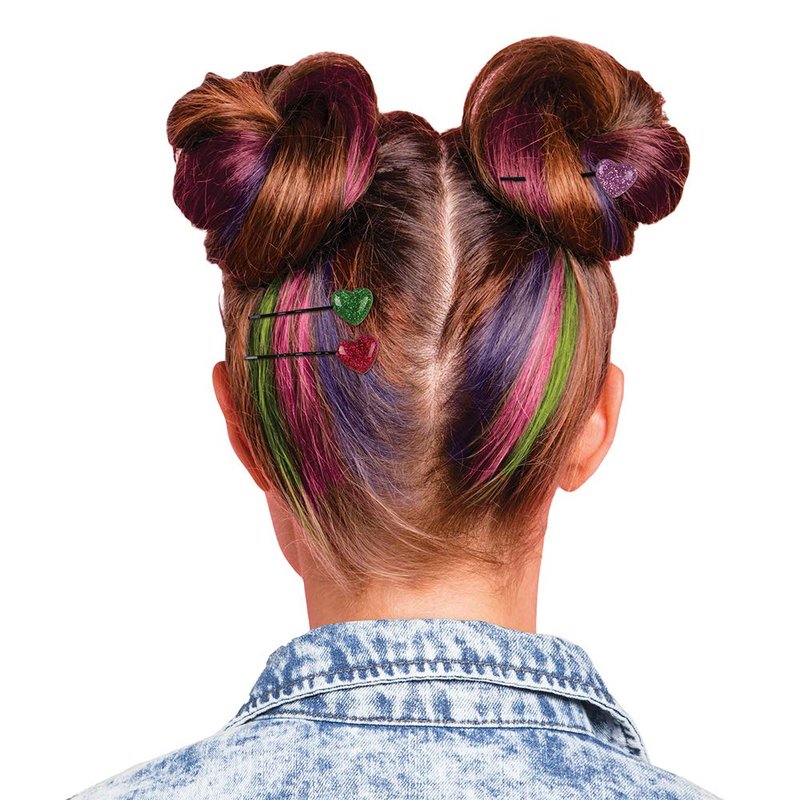 - Includes 4 temporary, non toxic, mess free hair chalk pens, and 3 heart shaped glitter bobby pins