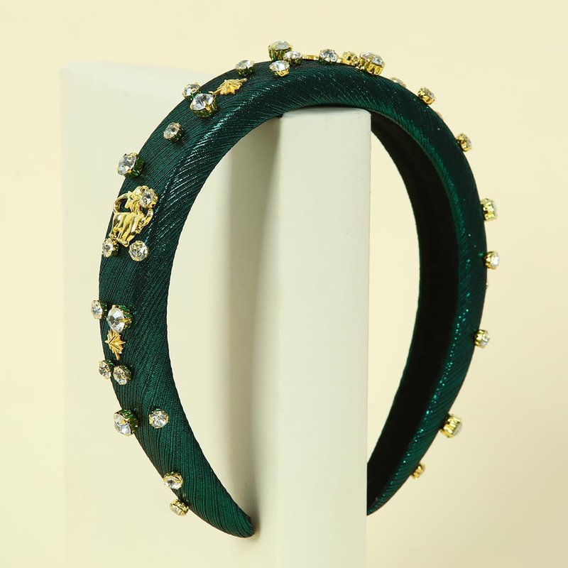 Fashion Green Padded Headband Constellation Birthday Hair Band Zodiac Sign Taurus Crystal Jewled Headband Vintage Hair Accessories