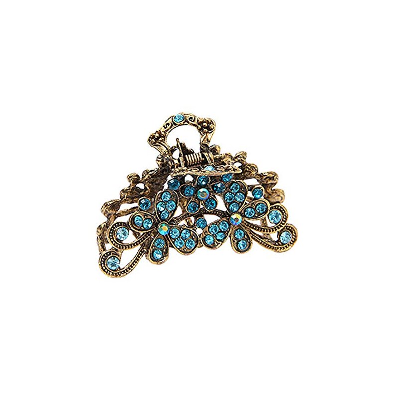 Fashion Vintage Rhinestone Metal Alloy Fancy Hair Claw Jaw Clips Pins - Retro Chic Hair Updo Grip Hair Catch Barrette Hair Accessories for Women (Sky blue)