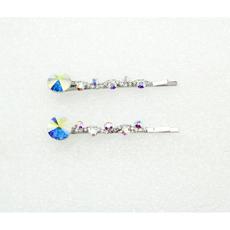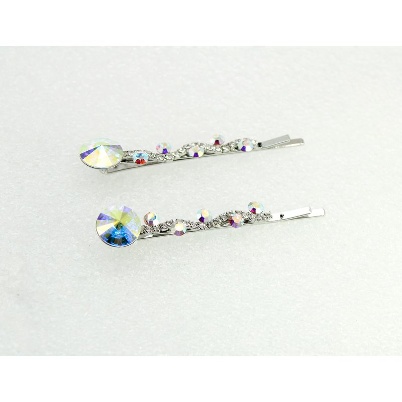 Faship A Pair Of AB Premium Rhinestone Crystal Floral Hair Clips 2 Pcs Pins - AB