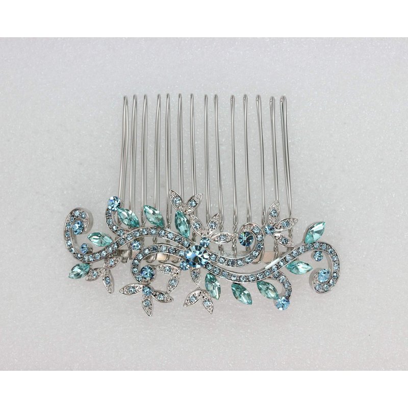 Faship Gorgeous Aqua Rhinestone Crystal Floral Hair Comb