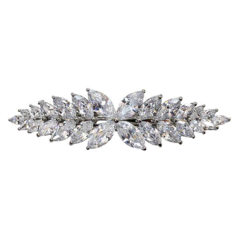 Faship Gorgeous Clear CZ Crystal Floral Hair Barrette Clip