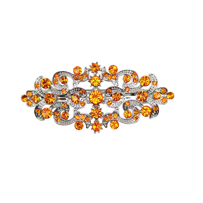 Faship Gorgeous Orange Rhinestone Crystal Floral Barrette Clip