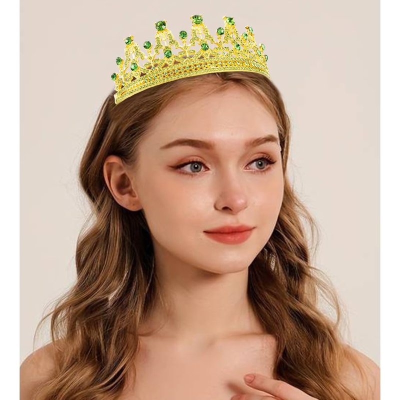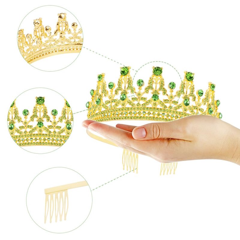 FASOTY Gold Tiara Green Crystal Crown with Combs Elegant Princess Tiaras and Crowns for Women Girls Rhinestone Headband for Bride Bridal Wedding Birthday Party Prom