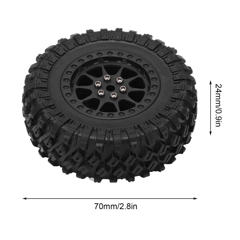 Feature:1. Exquisite Workmanship: Excellent tires can improve the stability of the tyre wheel.2. Antislip Surface: The of the rubber tire has clear uneven texture and strong grip.3. Applicable Models: Fit for MN D90 D91 D96 D99 D99S D86, for WPL B14 B24 C14 C24 C34 C44 RC car.4. Reasonable Design: Installation is simple and convenient, and old or damaged tires can be replaced.5. Good Shock Absorption Performance: Wear resistance, can support most rough and rough road driving in harsh environments.Specification:Item Type: RC Car Tires Material: Plastic + RubberWeight: Approx.137g/4.8ozTire Outer Diameter: Approx. 70mm/2.8inTire Width: Approx. 24mm/0.9inApplicable Models: for MN D90 D91 D96 D99 D99S D86, for WPL B14 B24 C14 C24 C34 C44 Package List:4 x RC Car TiresNote:1. Please allow 0‑1 inch error due to manual measurement. Thanks for your understanding.2. Monitors are not calibrated same, item color displayed in photos may be showing slightly different from the real object. Please take the real one as standard.