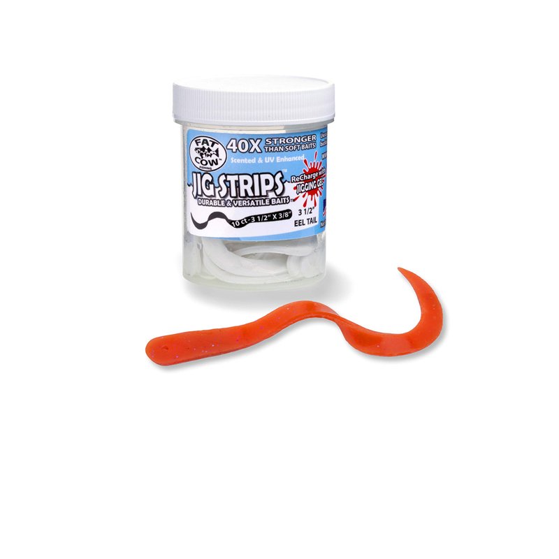 For use with your Jigs, Spinner baits, bucktails, rigs, tubes, and more! Jig Strips offer durable and versatile bait trailers. Made from a flexible synthetic material, these Eel Tail Jig Strips add strike inducing action, color, and scent while maintaining their usefulness. Leave the bait on your hook and use it over and over again. Spend less time changing your bait trailers and more time hauling in the big one - try Jig Strips and fish on.