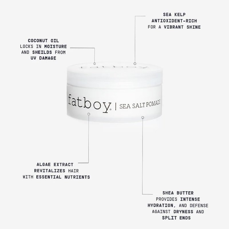 Fatboy Hair Sea Salt Pomade, Lightweight Hold for Texturizing Hair, Beach Wave Finish, All Hair Types, 2.6 Oz