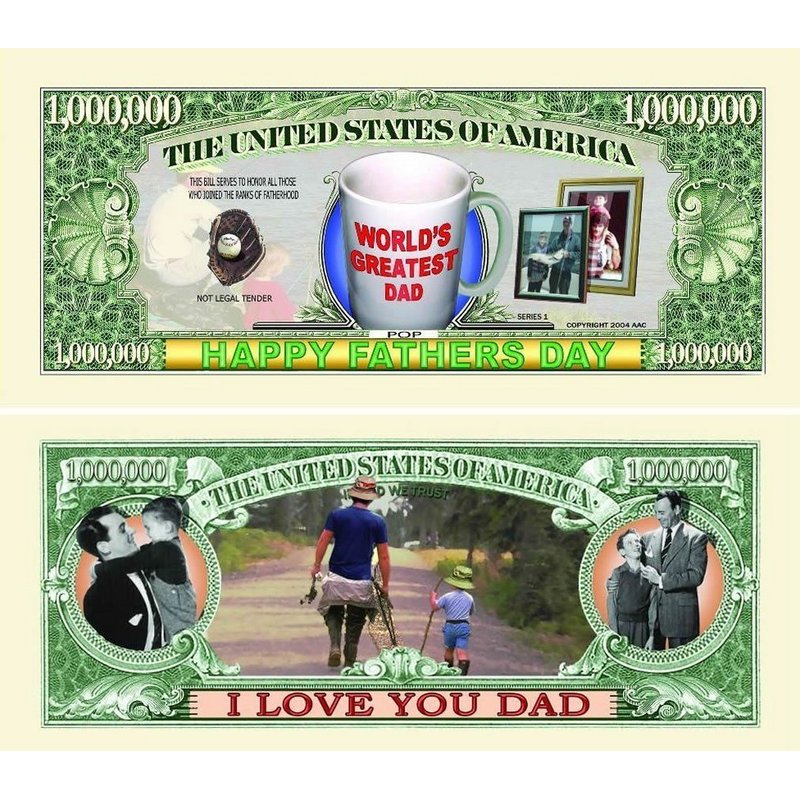 Father`s Day Million Dollar Bill with Bonus “Thanks a Million” Gift Card Set and Clear Protector