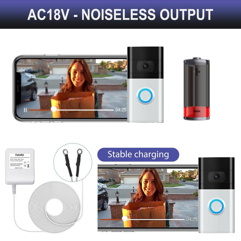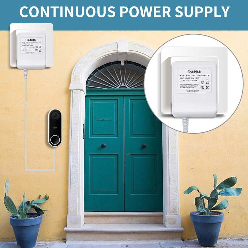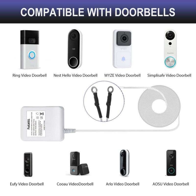 - Widespread Compatibility - The FATKITT doorbell power adapter is tailored for devices requiring a steady 18-volt supply. Perfect forRING, Nest Hello, Arlo, Eufy, Simplisafe video doorbells, and others requiring an 18 V transformer.