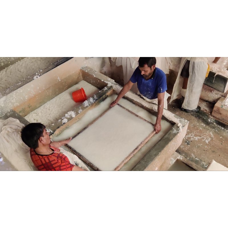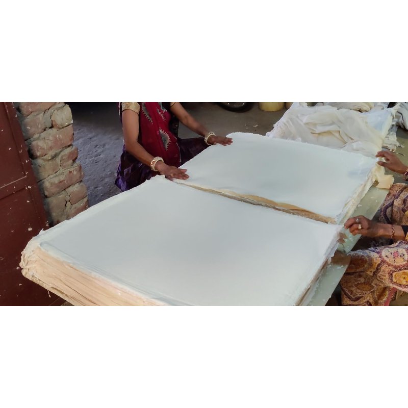 The fausta off-white cotton handmade paper is a high quality, environment friendly paper made from cotton. It comes in a pack of 25 sheets, and weighing 400 gsm, making it thick and durable. The paper has rough, deckle edges, giving it a unique, textured look that's perfect for various art projects like watercolour painting, drawing, and calligraphy. It's also great for special events like weddings, where you can use it for making invitations or cards. This paper is versatile, long-lasting, and adds a special touch to any creative work.