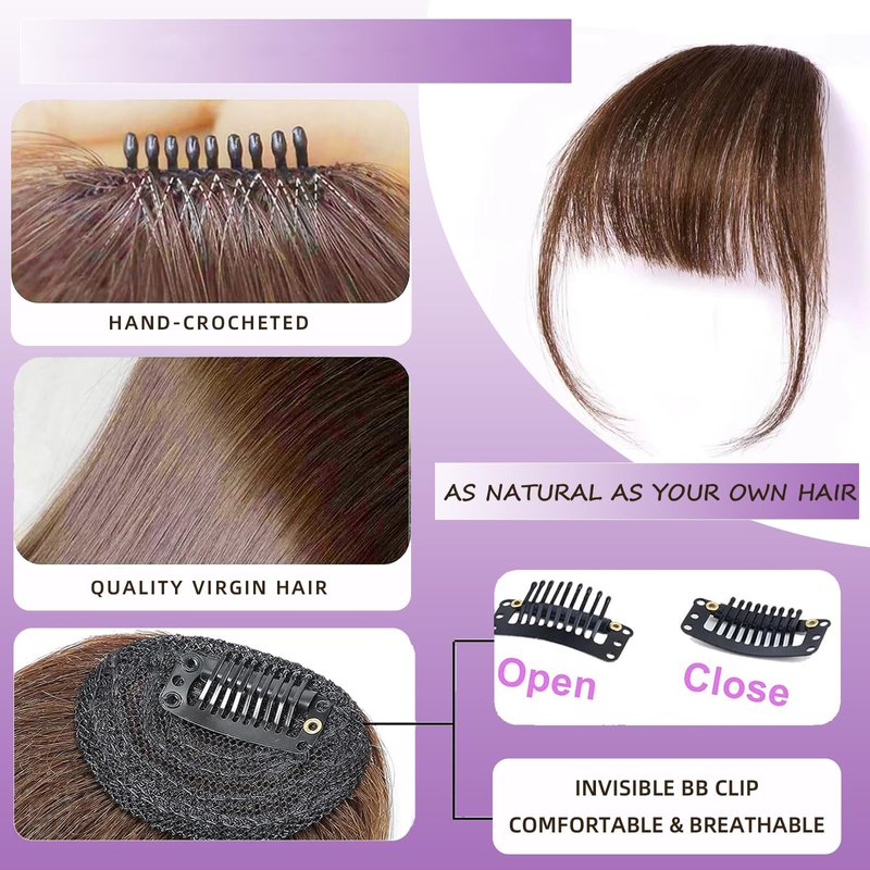 - ☘ FAKE BANGS HAIRCLIPS: high quality bangs hair clips, as shiny, soft and smooth as your hair. No knots, can be curled, can be straightened, no shedding, no odor. Due to long time transportation, the bangs may be deformed. Don't worry, you can redesign it with a heating tool before use. Or wash it with water and blow dry it.