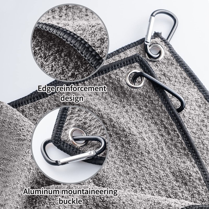 - HEAVY-DUTY CARABINER CLIP: Sturdy and hard Aluminum carabiner clip can attach the towel to your golf bag and prevents losing your towel. Super convenient and easy to use.