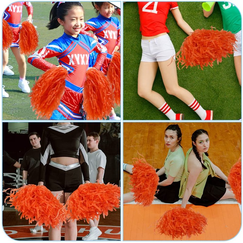 Faxco 12Pack Plastic Pom Poms Cheerleading Pom Poms Sports Dance Cheer Plastic Pom Pom for Rooters,Cheering Squard,Cheering Team (Orange)