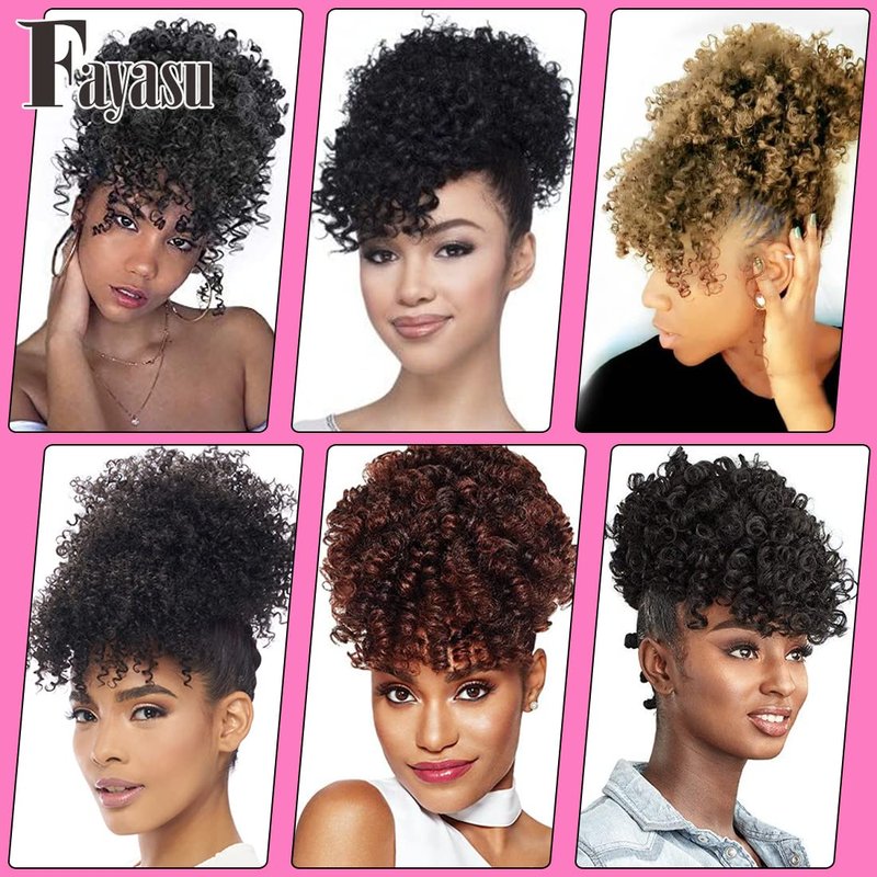 - Fashion style:Short afro puff drawstring ponytail looks completely natural without shining in the sun. So put on it, please, and you will be more beautiful and younger. It is not only suitable for adults, but also for teenagers/kids.