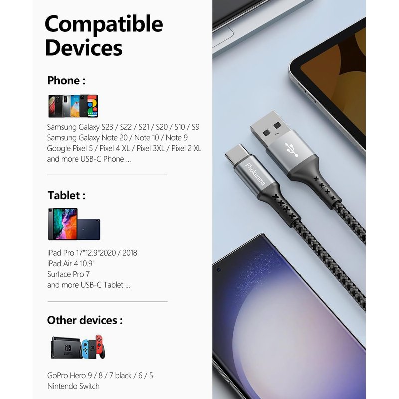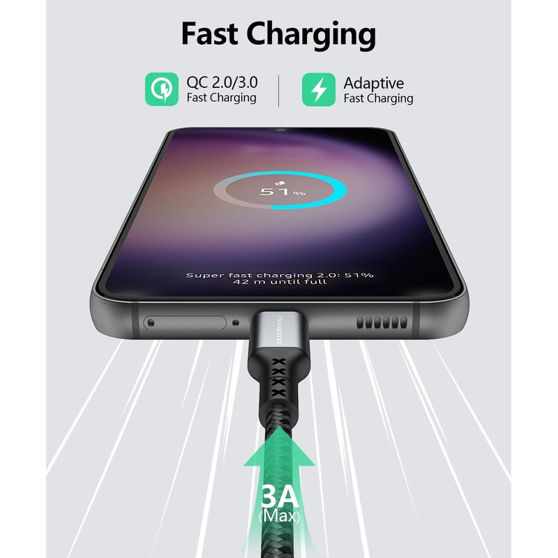 - 3A Fast Charging & Sync : USB A to USB C Cable with Premium 56 KΩ pull-up resistor and Aluminum foil anti-jamming layer, supports More Safe High-Speed Charging (QC 3.0/ QC 2.0) and Faster Data Transfer (480 Mbps Max)