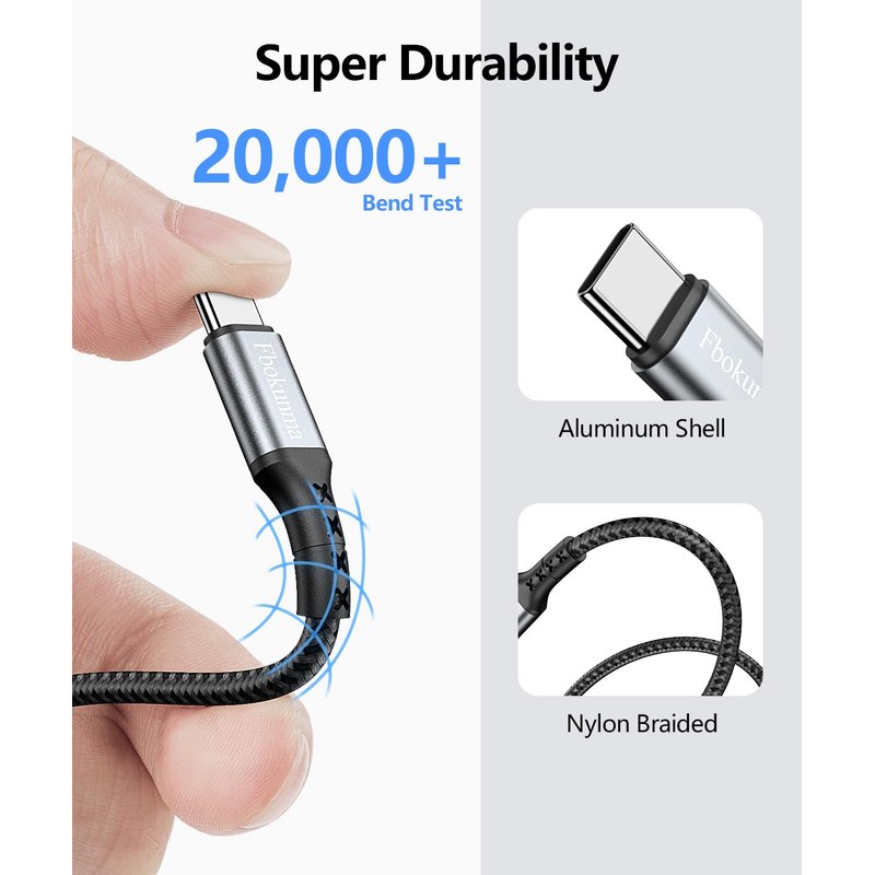 Fbokunma USB C Cable 1.6FT [3Pack], 20inch 3A USB to USB C Cable Nylon Braided Fast Charge Cord for iPhone15/15Pro/15Pro Max/15Plus,Galaxy S23/S22/S21,Note10/9, Power Bank and Other USB-C Devices