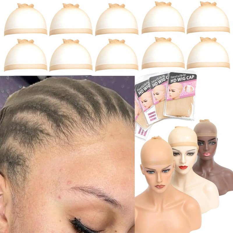 FDBJulyy 10 Pcs Transparent HD Wig Cap, Thin Nylon Cap for Women, Suitable for Parties, Weddings, Graduations, Cosplay, Halloween