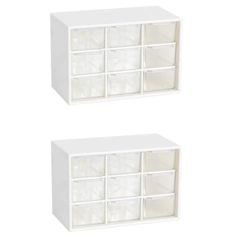 Feadily 2PCS Small Drawer Organizer for Desk, Desktop Drawer Organizer with 9 Clear Drawers, Plastic Desktop Storage Drawers 7.1" x 3 .9" x 4.7", White