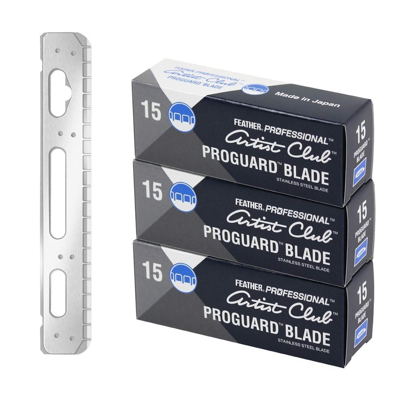 Feather Artist Club ProGuard Razor Blades - (3 Pack of 15) - Single Straight Edge Razor Blades with Guard Refills for Shaving - For Men & Barbers