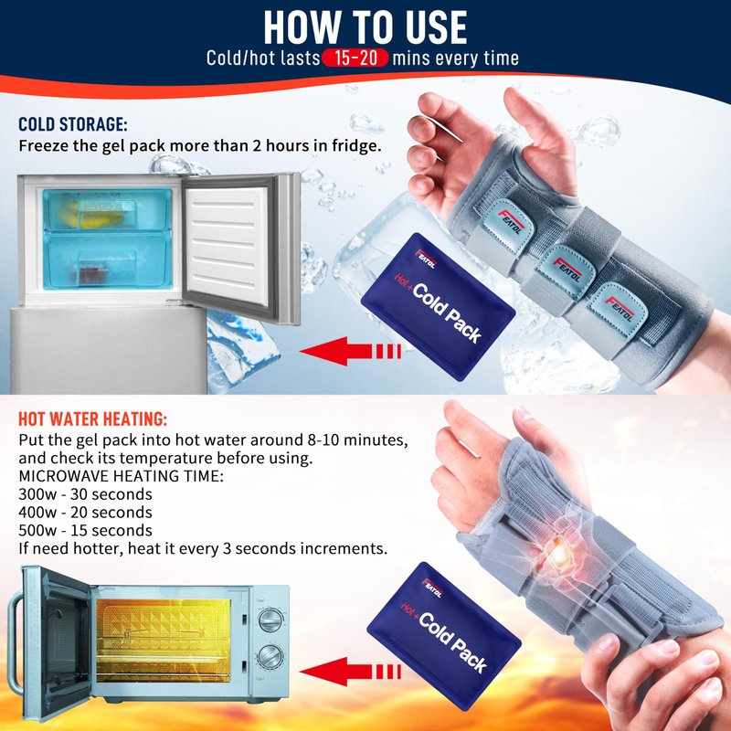- ✅【 Comfortably Cold and Hot 】This Wrist Brace includes one removable one ice gel pack. After a couple of hours in the freezer, the ice pack for injuries gets super cold! The Ice packs contour to the wrist for pain relief. The Hot & Cold gel pack Can help you calm swelling faster. You can choose heating and cooling according to your actual situation to relieve your pain.