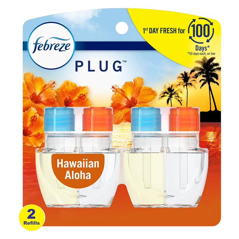 Febreze Odor-Fighting Fade Defy PLUG Air Freshener Refill, Hawaiian Aloha, (2) .87 fl. oz. Oil Refills
