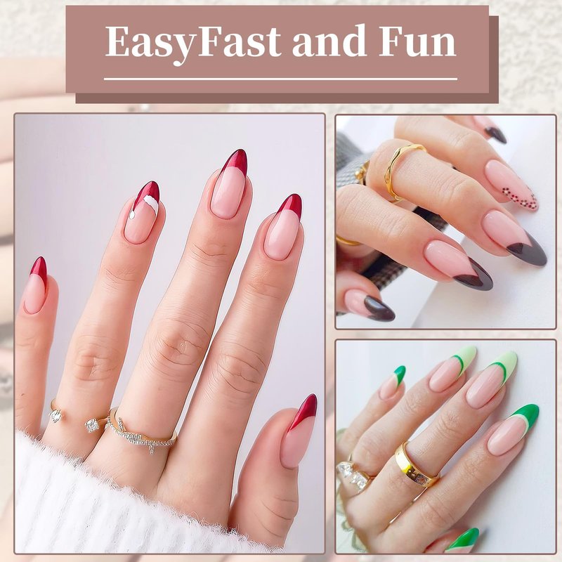 - Versatile: These clear almond nail tips are ideal for every occasion. Whether for daily life, a party, a wedding or a dance, the gel nail tips can add sparkle to your fingers. You don't need any expertise to get your nail art done at home, saving you time and money and keeping your nails polished all the time. The almond press on nails are also an ideal choice for holiday gifts