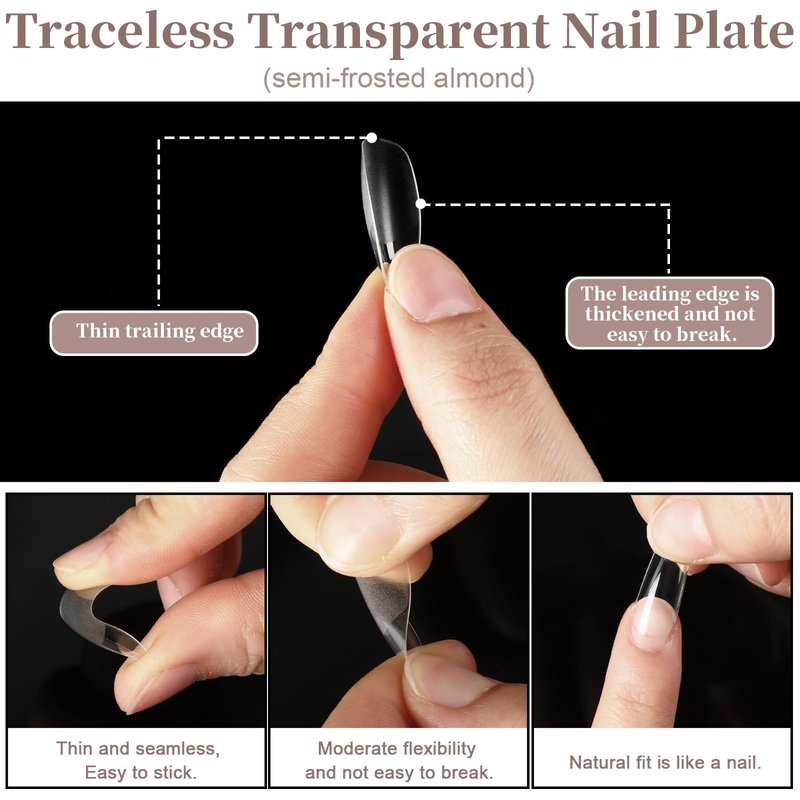- Comfortable to Wear without Trace: Our almond nail tips are made of good quality ABS material to ensure durability. The short almond nail tips are not easy to break or cause trace, the acrylic press on nails fit your finger well and are comfortable to wear. Almond press on nails make your nails look beautiful for a long time.Made of good quality materials, soft gel nail tips remain clear and transparent, showing your elegant and stylish