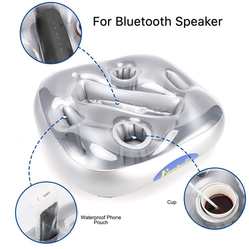 - EASY TO INFLATE: Get the party started right away without struggling to inflate your drink float holder! Feebria’s swimming pool floating bar can be easily inflated - even use a hair dryer for super fast party prep!