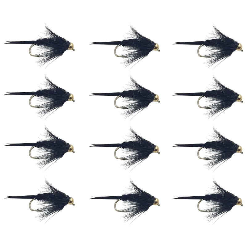 Feeder Creek Fly Fishing Flies | Bead Head and Regular Stonefly Nymphs | 12pc Wet Lures | Trout and Bass Flies | Fly Fishing Assortment (Bead Head Black Size 10)