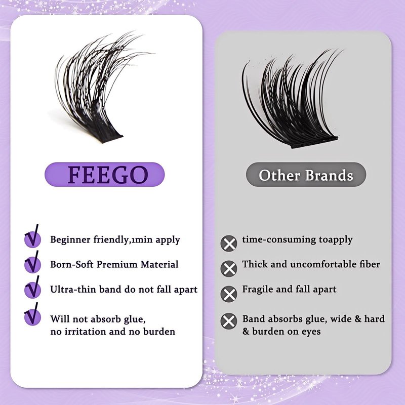 - 🍇About FEEGO lash cluster kit🍇: FEEGO is here for you, and we stand behind every product we sell. Please rest assured to try cluster eyelash extensions kit. If you have any question, please tell us and we will give you satisfactory result.