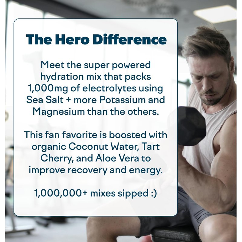 - INCREASE PERFORMANCE - Hydration Hero supports healthy physical exercise using Organic Coconut Water and Tart Cherry. This active performance blend is also boosted with a trace mineral complex to promote physical strength, endurance and cognitive function. Enjoy pure and natural hydration to fuel your inner hero.